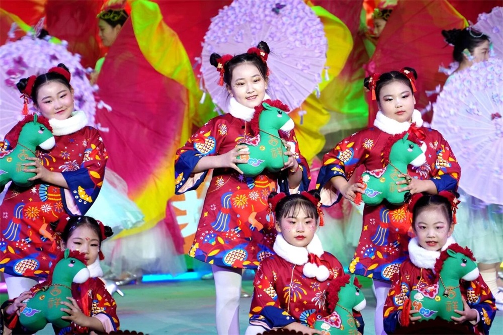 演出伊始,开场舞《骏驰春潮》以铿锵激昂的鼓点、矫健灵动的舞姿,奏响了奋进新时代的昂扬乐章,瞬间点燃全场热情,拉开了演出的序幕。